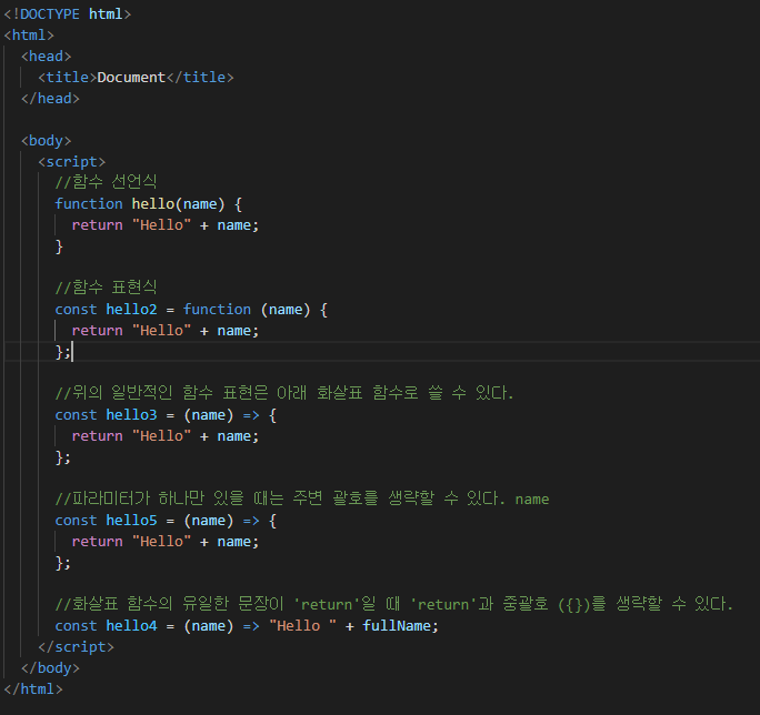 Arrow Function(화살표 함수)는 함수를 정의하는 새로운 방법이다.