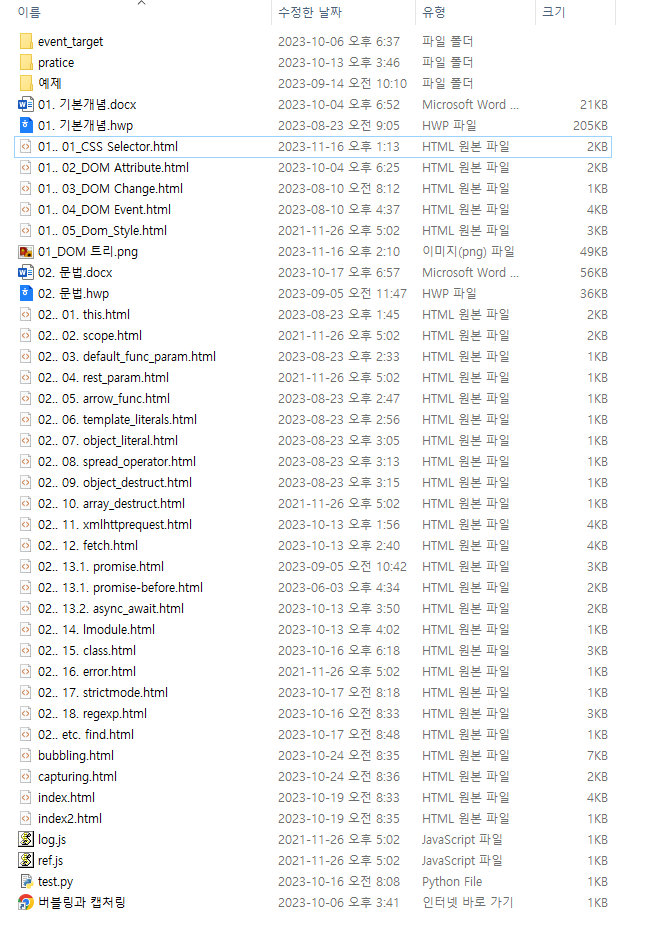 | JavaScript_01. 기본개념_HTML_DOM 2 (0) | 2023.11.16 |