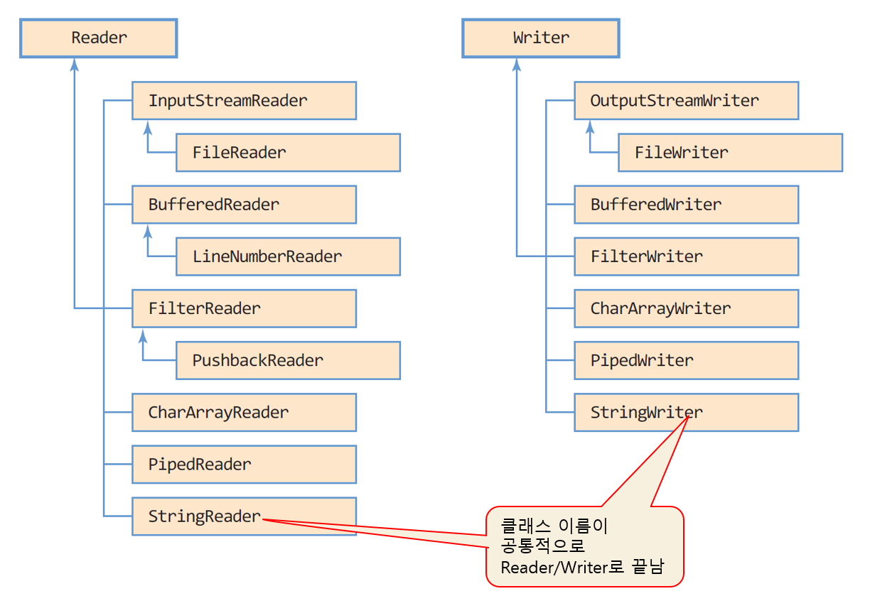 모든 문자 스트림 클래스들은 추상 클래스인 Reader와 Writer에서 파생된다.