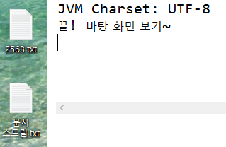 바이트 스트림과 마찬가지로 정상적으로 실행되어 파일이 생성 되었고 해당 내용도 똑같이 잘 들어가있다. (사진에는 따로 넣지 않았다) file.encoding의 경우 JVM의 값이 없으면 현재 OS의 값을 참조하여 사용한다.