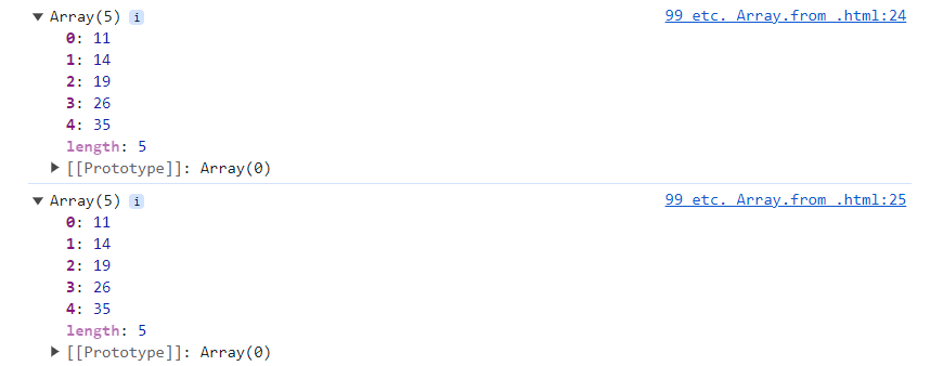 let newArray = Array.from(iterable, mapFunction, thisArg); //[11, 14, 19, 26, 35]