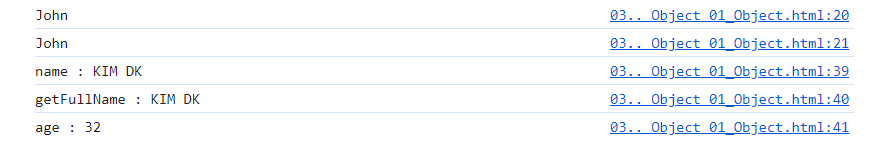 return this.firstName + " " + this.lastName; // 여기서 this는 Object 객체를 가리킨다.