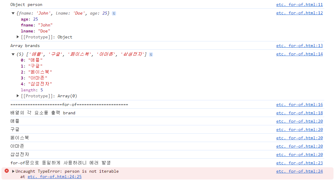 console.log('for-of문으로 동일하게 사용하려니 에러 발생');
