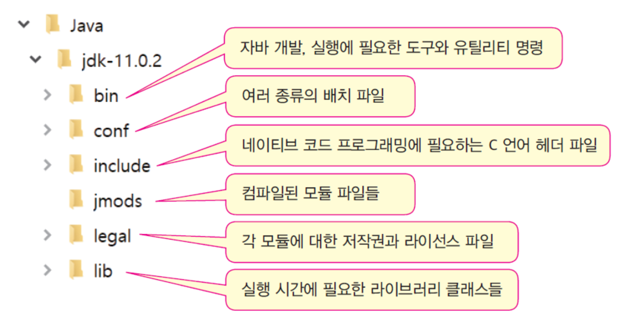 JDK는 컴퓨터 안에 몇 개의 폴더를 생성한다.