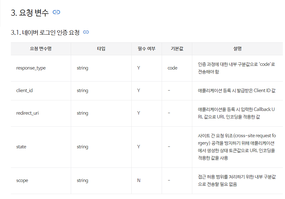네이버 로그인 기능을 사용하고 싶어서 해당 시스템에 필요한 변수들을 요청한다.