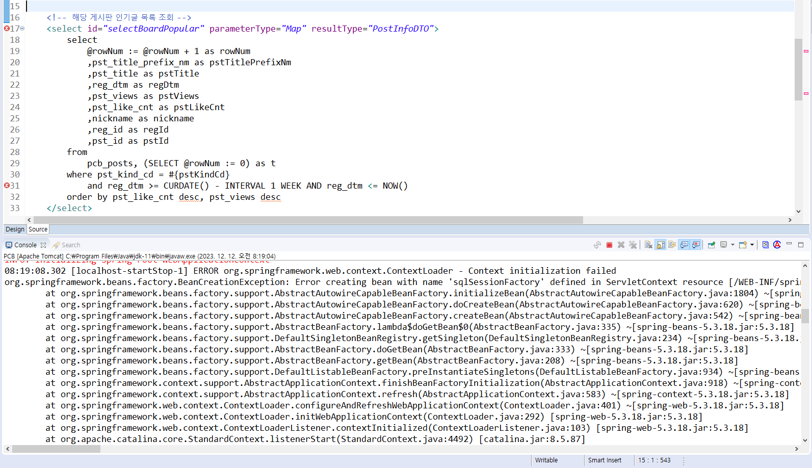 잘 실행이 되는것을 확인하고 비지니스 로직 짜서 데이터 잘 가져오는지 log 찍어보려고 실행했더니 에러가 발생한다. 이 때 직감적으로 cdata 한번 붙여서 써봐야겠다는 생각이 들었고 결과는 다음과 같다.