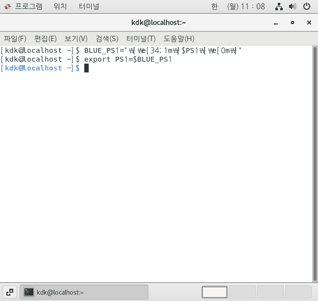 프롬프트 뒤에 \[\e[x;y;0m\]을 붙여주는 이유는 원래 색상으로 돌아가기 위한 것이다. 지정하지 않으면 이후 셸의 모든 출력이 프롬프트의 색상과 같아진다
