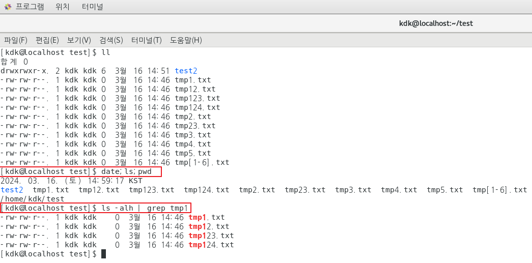 ;은 연결된 명령을 왼쪽부터 차례로 실행